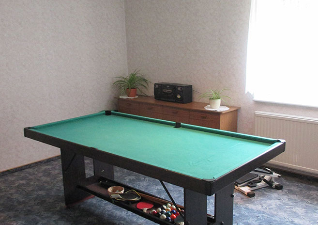 Weiterhin steht Ihnen ein Aufenthaltsraum mit TV, ein Fitness- und Billardraum, Kühlschrank und Kaffeemaschine, eine Spielecke für die Kinder, Liegewiese, Sitzecke, Grillplatz und ein PKW-Stellplatz zur Verfügung.