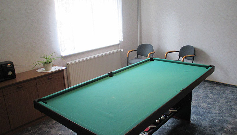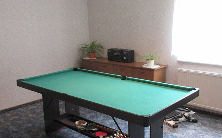 Weiterhin steht Ihnen ein Aufenthaltsraum mit TV, ein Fitness- und Billardraum, Kühlschrank und Kaffeemaschine, eine Spielecke für die Kinder, Liegewiese, Sitzecke, Grillplatz und ein PKW-Stellplatz zur Verfügung.